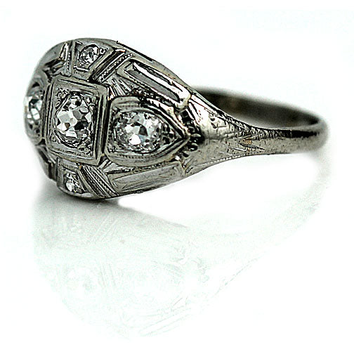 Art Deco .70 CTW 14 Karat White Gold Antique Three Stone Engagement Ring