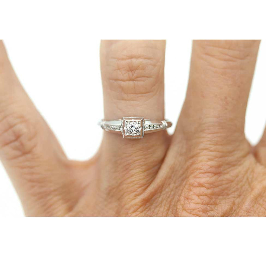 Dainty Art Deco .22 CTW Geometric Square Transitional Cut Diamond Antique Engagement Ring