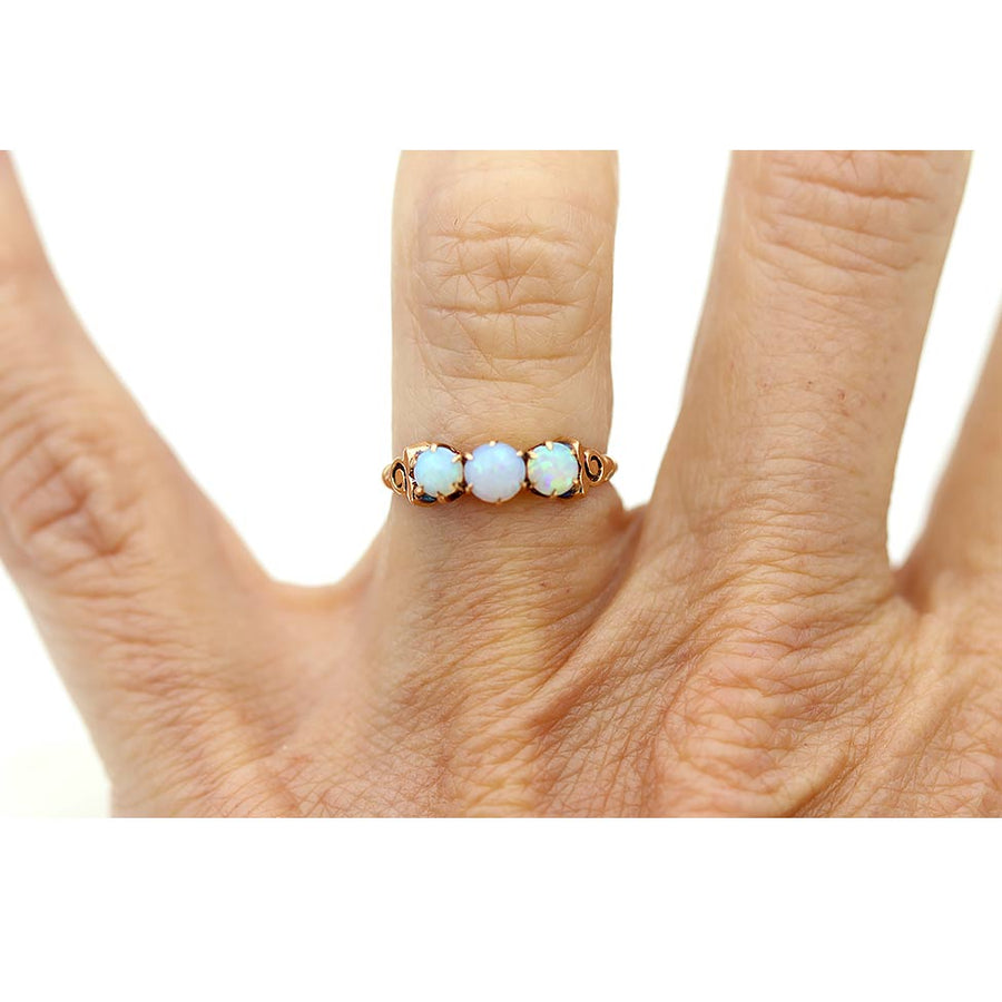 Dainty Victorian 3 Stone Opal Wedding Ring