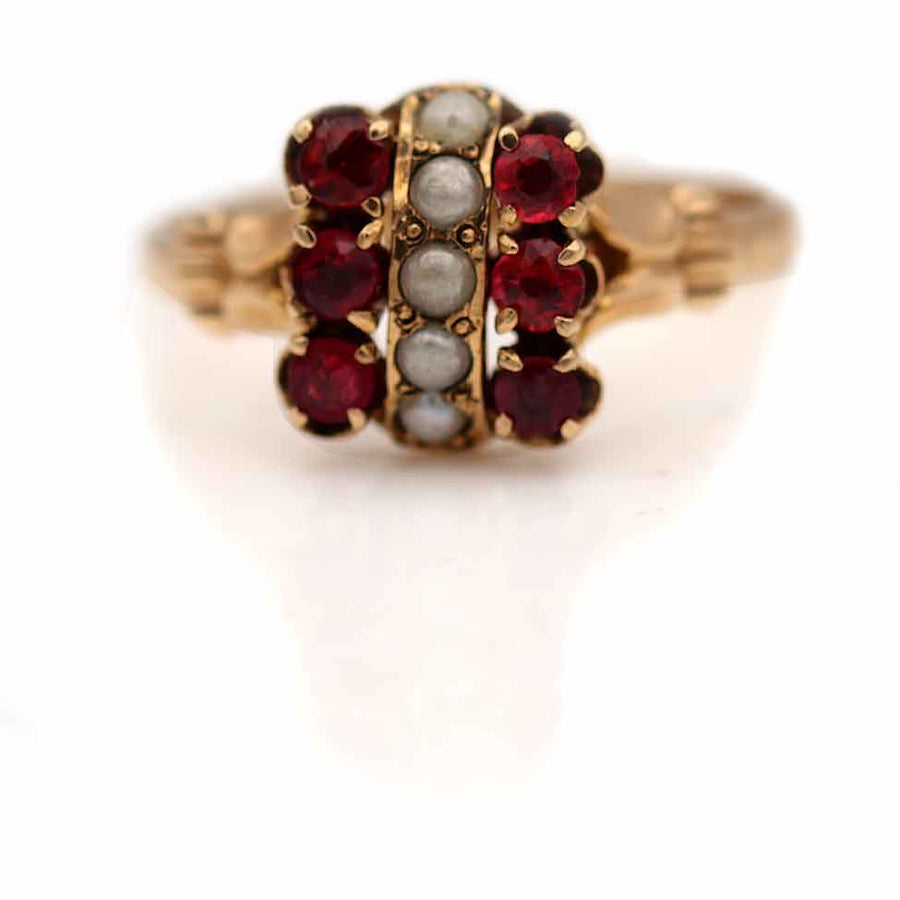 Delicate Victorian Garnet & Pearl Engagement Ring