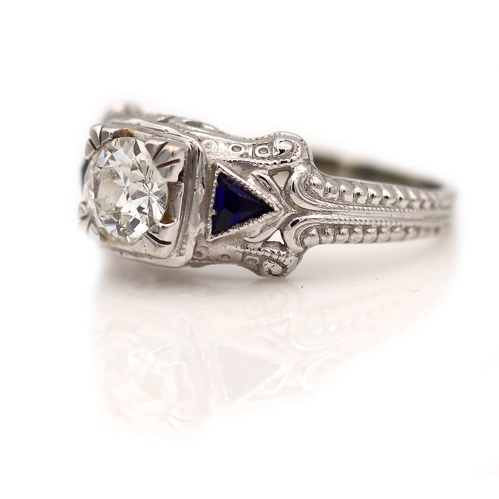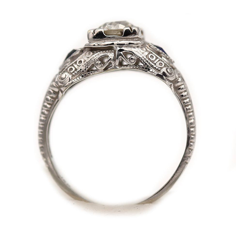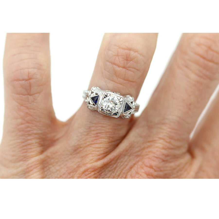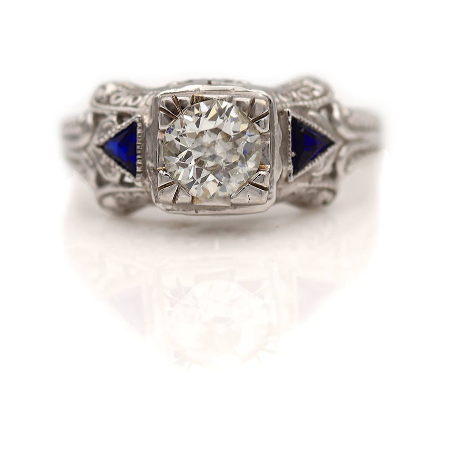 Estate .62 CTW Old European Cut & Sapphire Vintage Engagement Ring