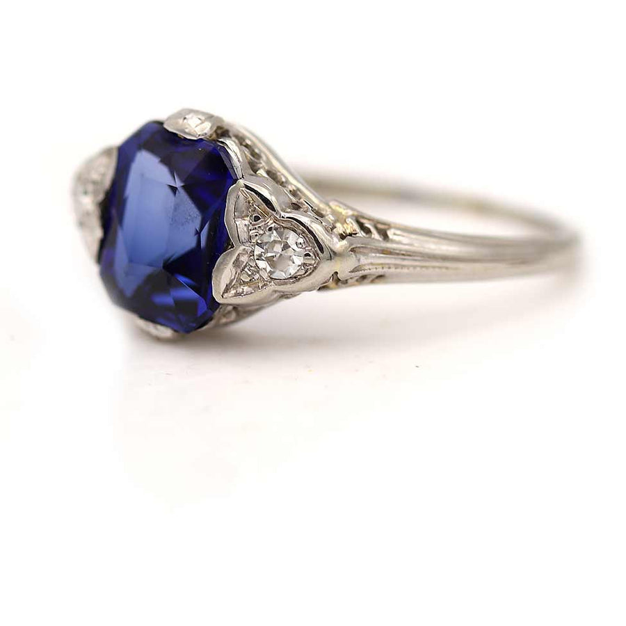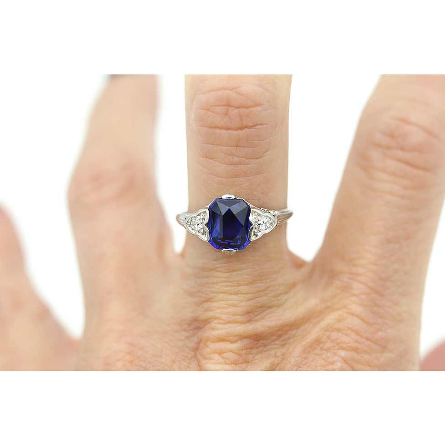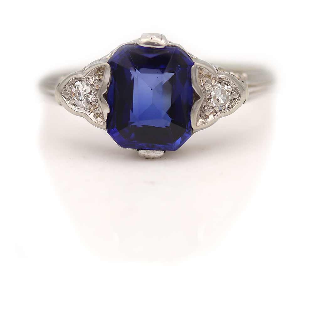 Lambert Bros Art Deco Synthetic Sapphire & Diamond Engagement Ring