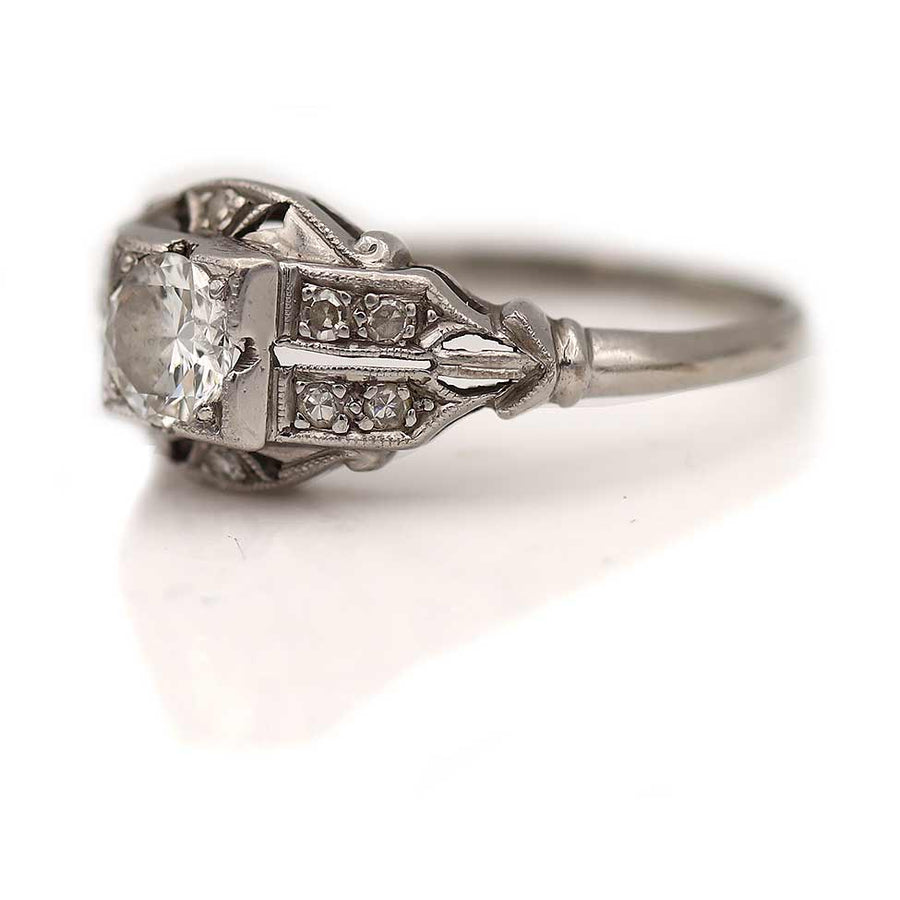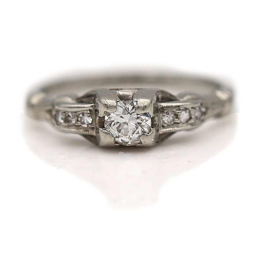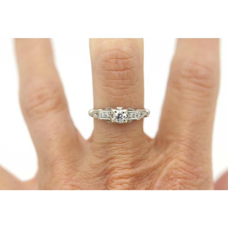 Late Art Deco .42 CTW Mine Cut Diamond Antique Engagement Ring 5/17/1942