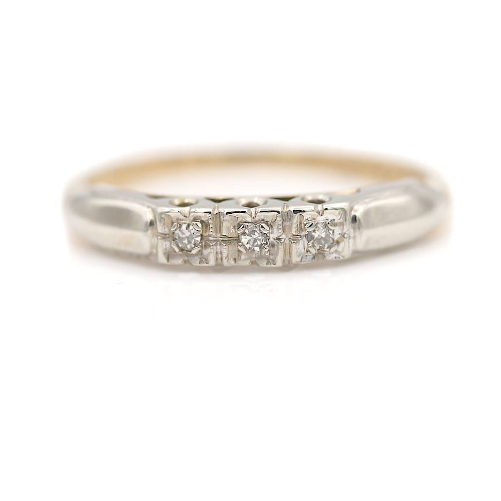 Mid-Century .05 CTW 3 Stone 14K Two Tone Prong Set Vintage Wedding Band