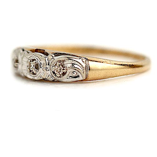 Mid-Century .05 CTW Diamond Milgrain Vintage Wedding Band Two Tone 14 Kt Gold