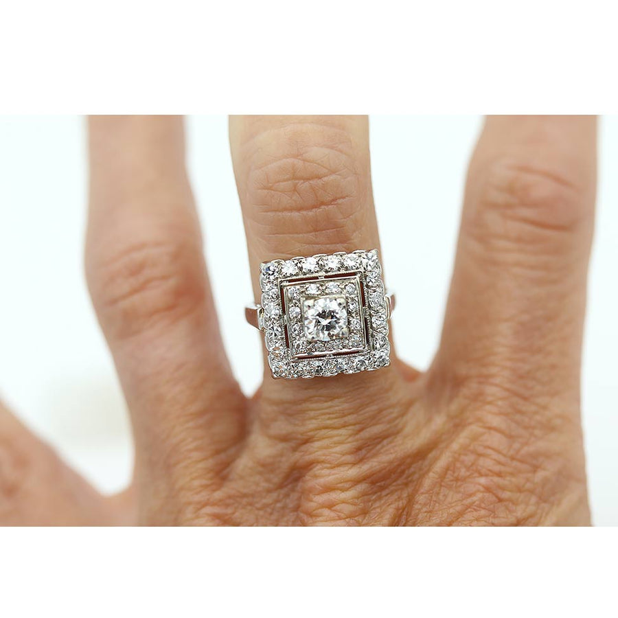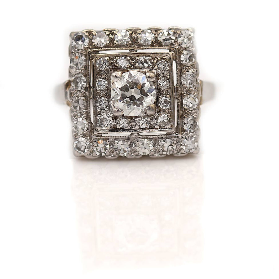 Mid-Century 1.15 CTW Square Halo European Cut Diamond Vintage Cocktail Ring