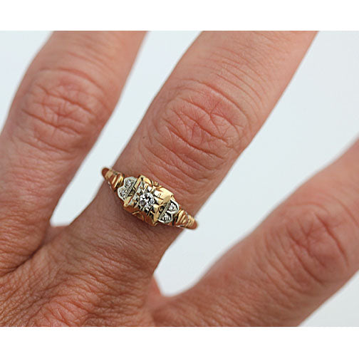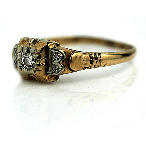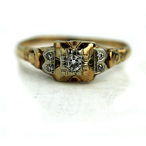 Mid-Century .15 CTW 14K Two Tone Diamond Vintage Engagement Ring with Side Stones