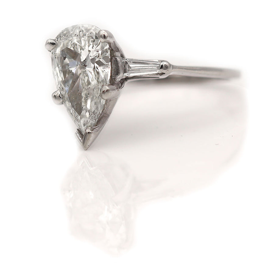 Mid-Century 2.31 Carat Pear Shape Vintage Diamond Ring GIA L/I1