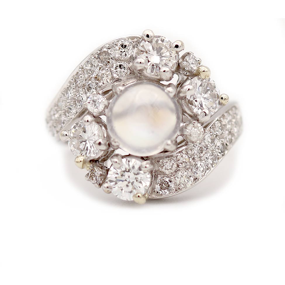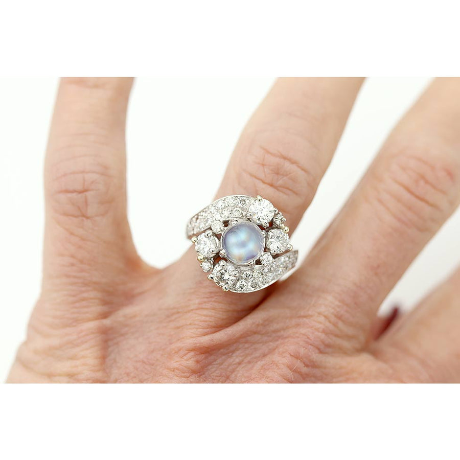 Mid-Century 2.35 CTW Moonstone Round Cut Diamond Vintage Cocktail Ring Signed Ruser