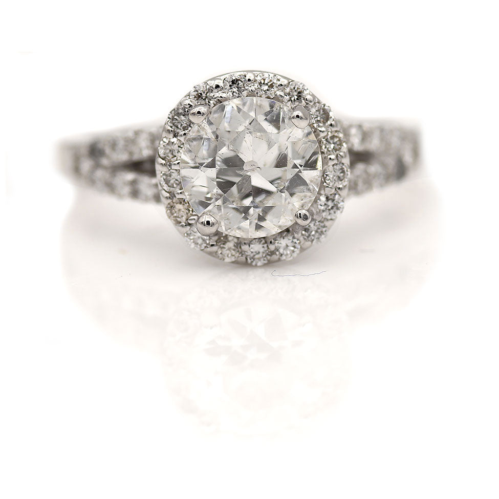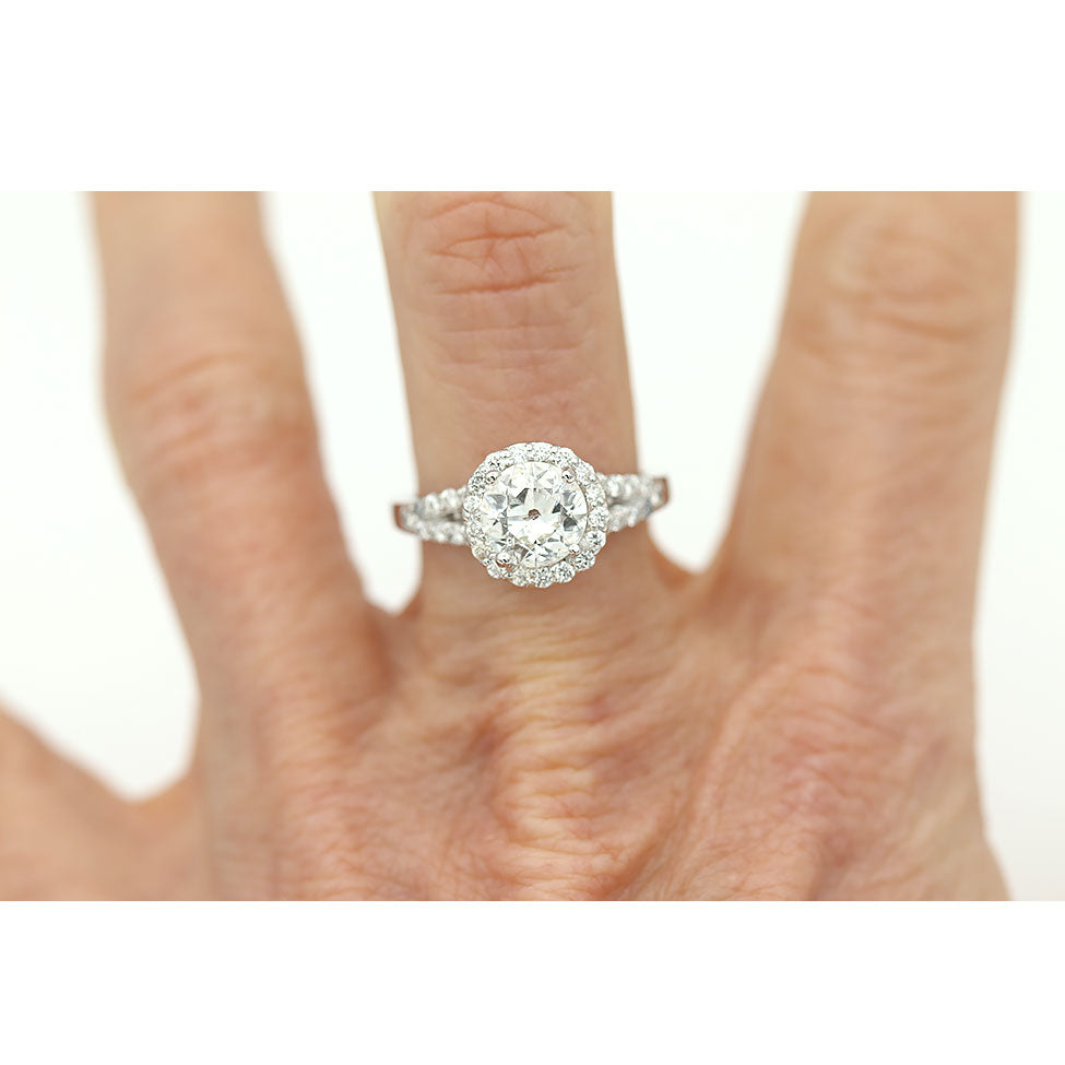 Mid-Century 2.53 CTW Halo Split Shank Old European Cut Diamond Vintage Engagement Ring