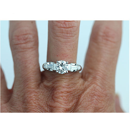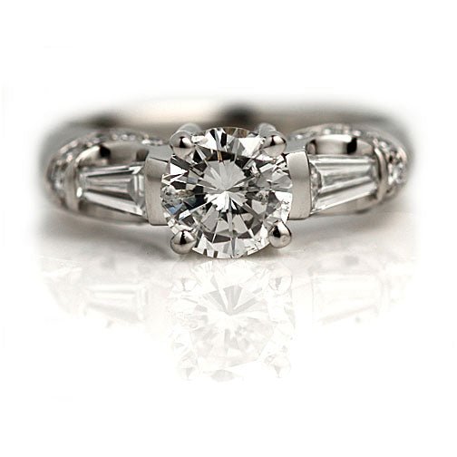 Mid-Century 2.60 CTW Diamond Vintage Engagement Ring with Side Baguettes