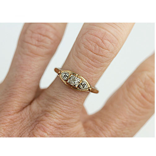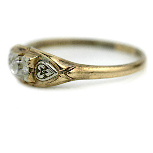Mid-Century .25 CTW Old Mine Cut Diamond Vintage Engagement Ring with Side Engravings