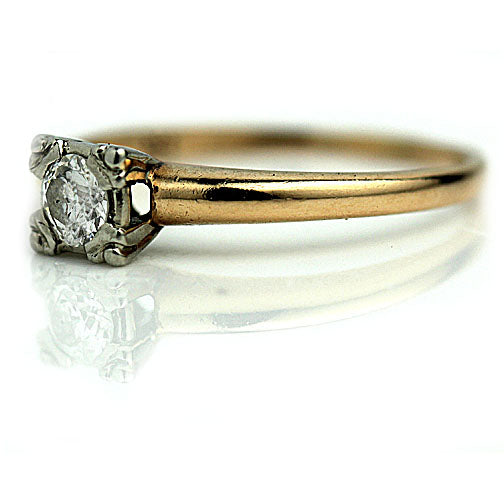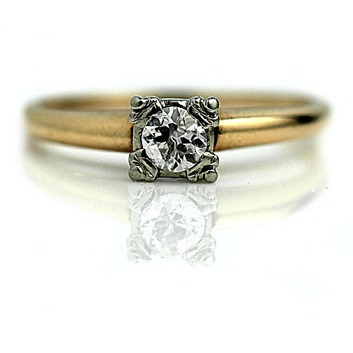 Mid-Century Euro Cut .30 CTW 1940s Vintage Solitaire Engagement Ring