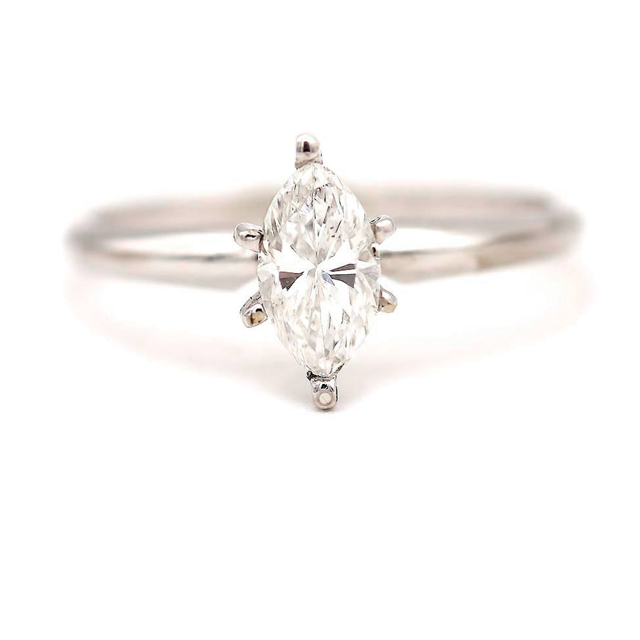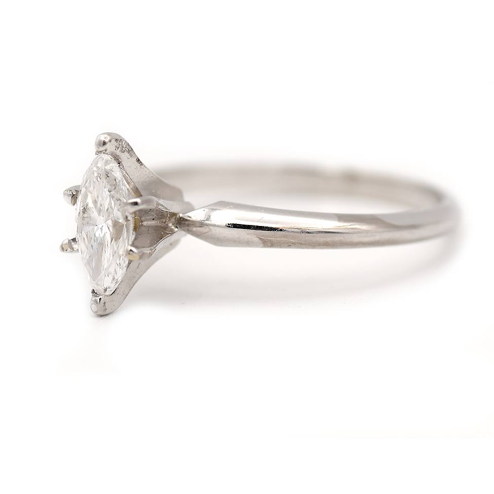 Mid-Century .61 CTW 14 Karat White Gold Marquise Cut Diamond Solitaire Vintage Engagement Ring GIA D/SI1