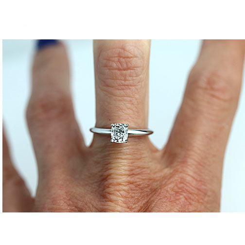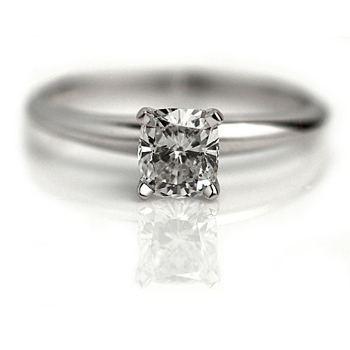 Mid-Century .70 CTW Cushion Cut Diamond Solitaire Vintage Engagement Ring GIA E/I1