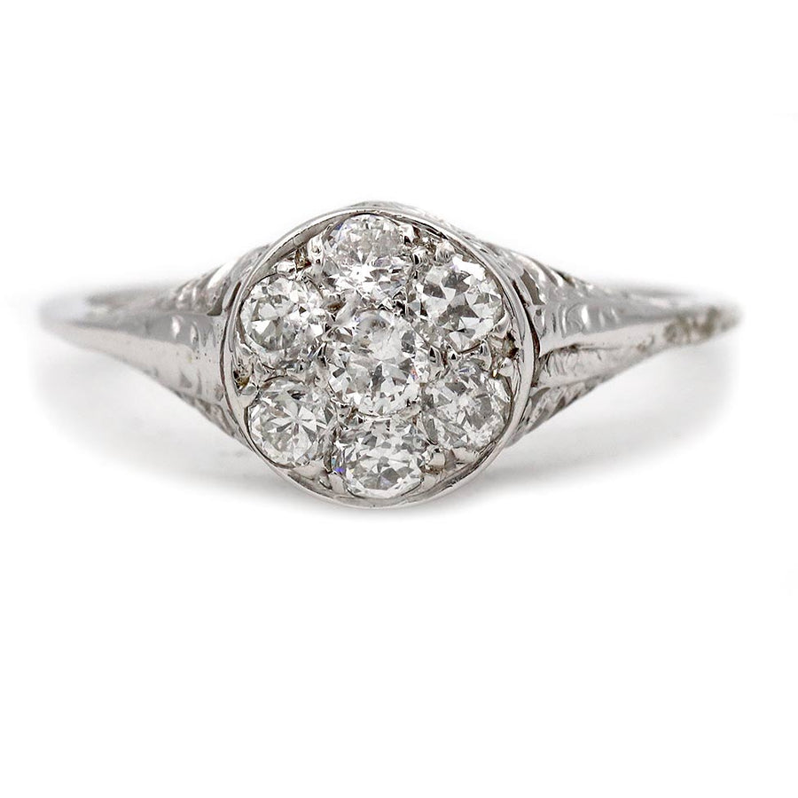 Mid-Century .70 CTW European Cut Antique Diamond Cluster Ring