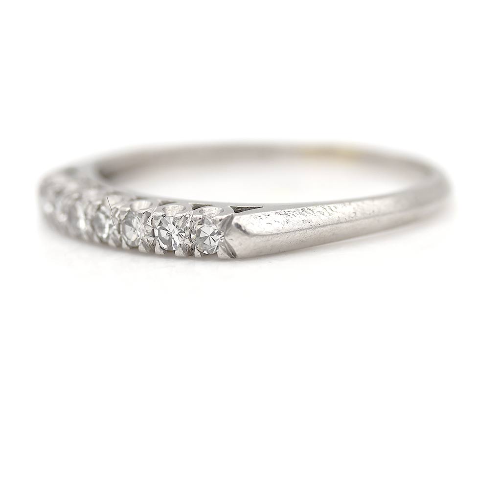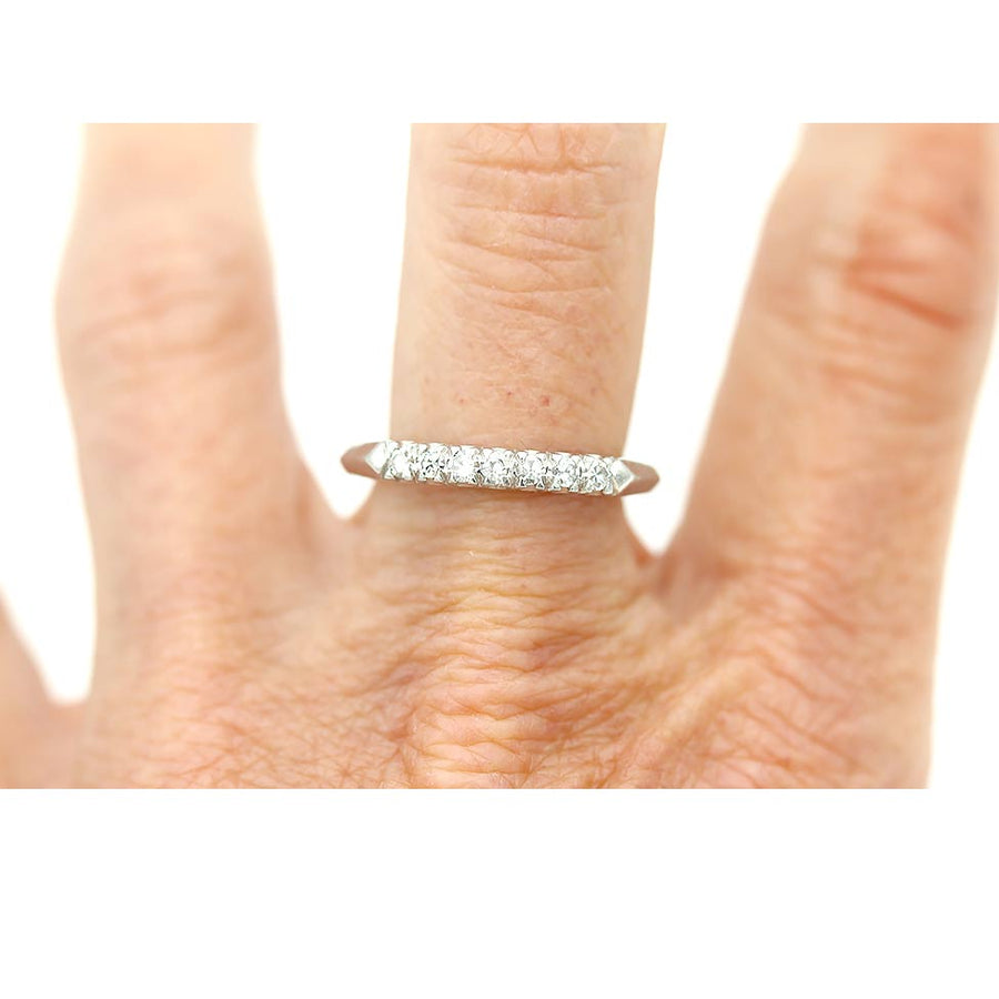 Mid Century Vintage 7 Stone Platinum Single Cut Diamond Stacking Band