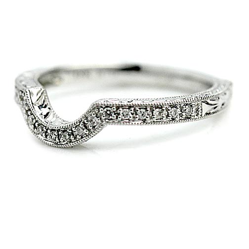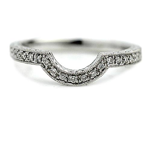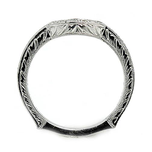 Your partner has a vintage style and flair of her own, then she will simply adore this vintage style nested wedding band! Crafted in the 1990's in 18 kt white gold, featuring 21 sparkling round diamonds weighing .11 carat (G color and VS2 clarity), finished with delicate filigree and milgrain engravings. The perfect complement for your vintage engagement ring!