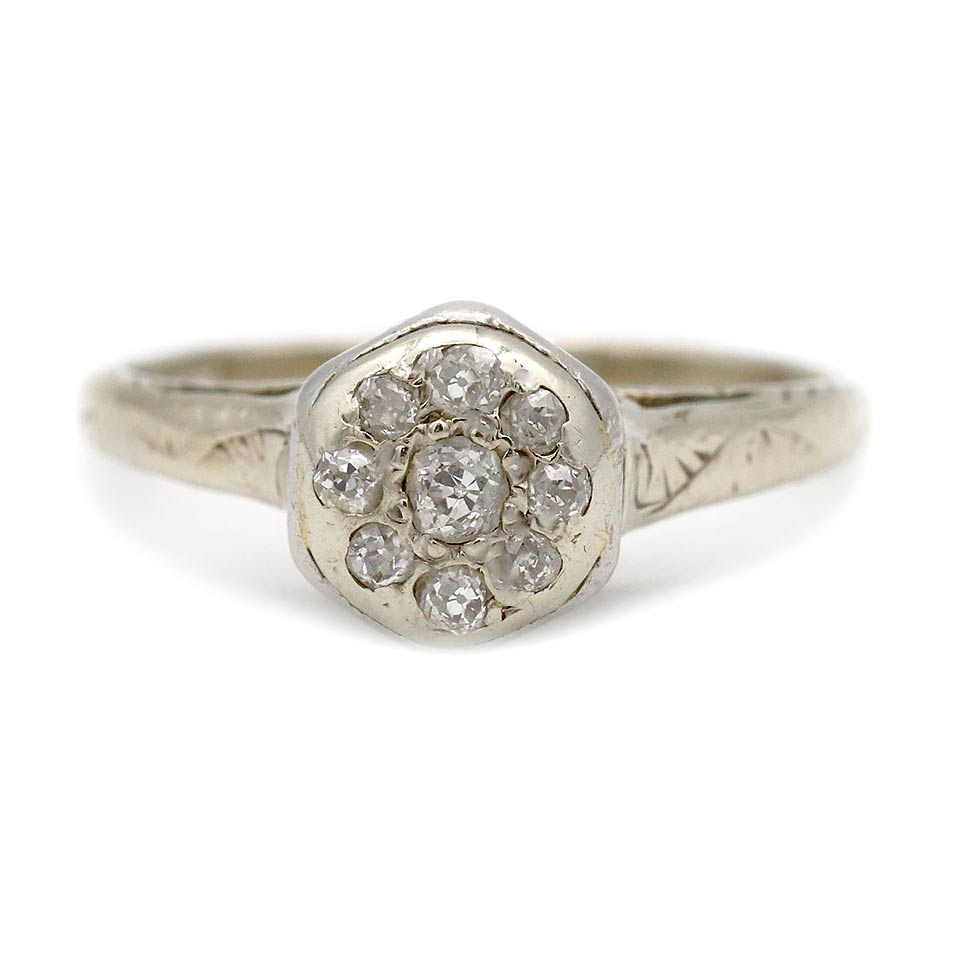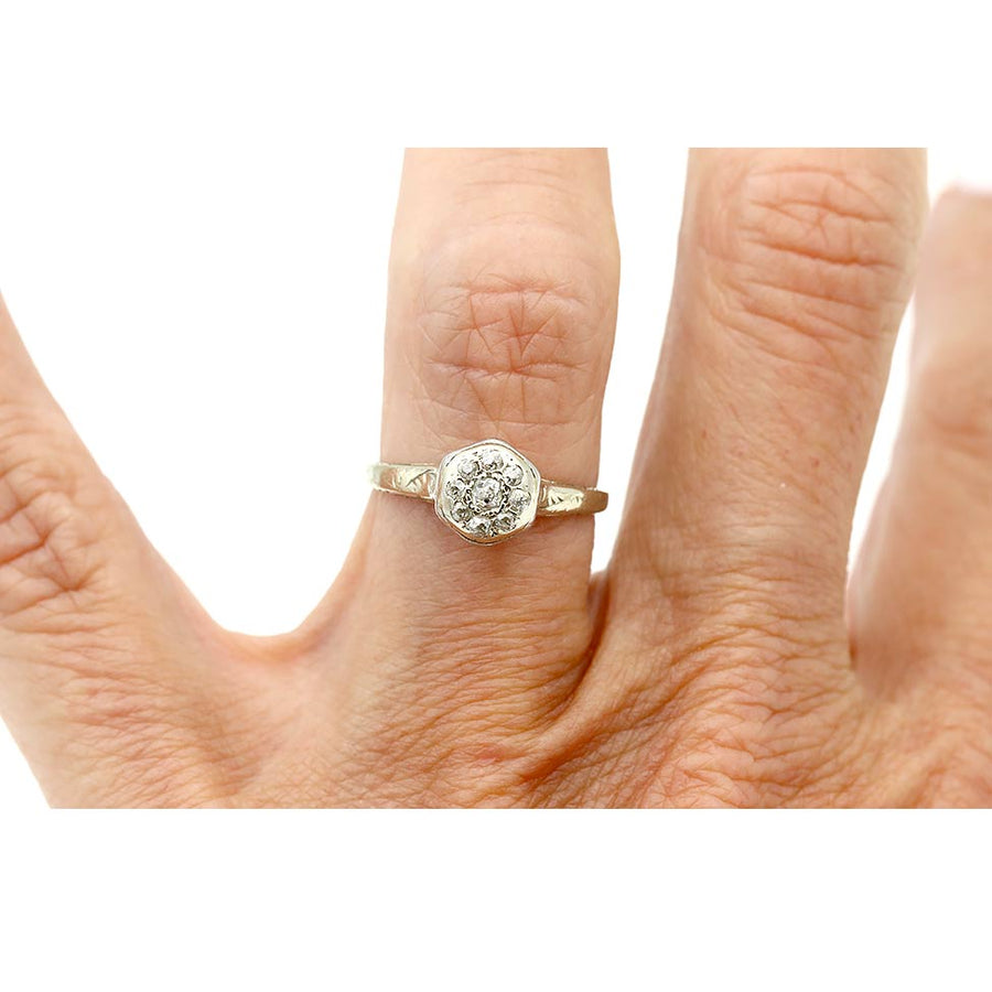 Petite .30 CTW Vintage Cluster Diamond Engagement Ring in 14 Karat White Gold