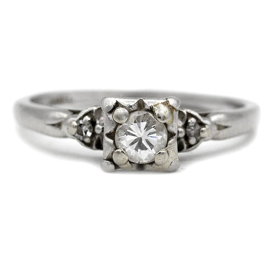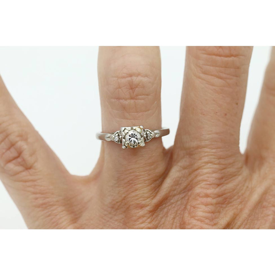 Petite Mid-Century .27 CTW Transitional Cut Diamond Vintage Engagement Ring Signed "Jabel"