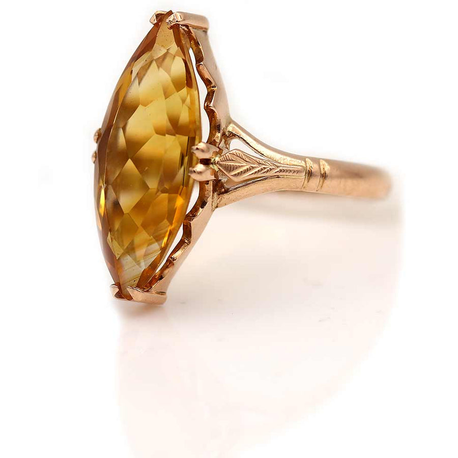 Victorian Marquise Cut Citrine Engagement Ring Circa 1900s 3.50 Carat