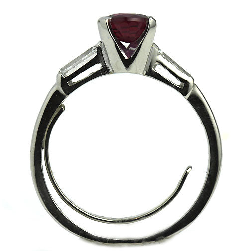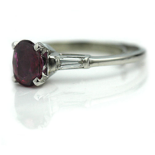 Vintage 1.44 CTW Ruby Baguette Diamond Platinum Gemstone Engagement Ring