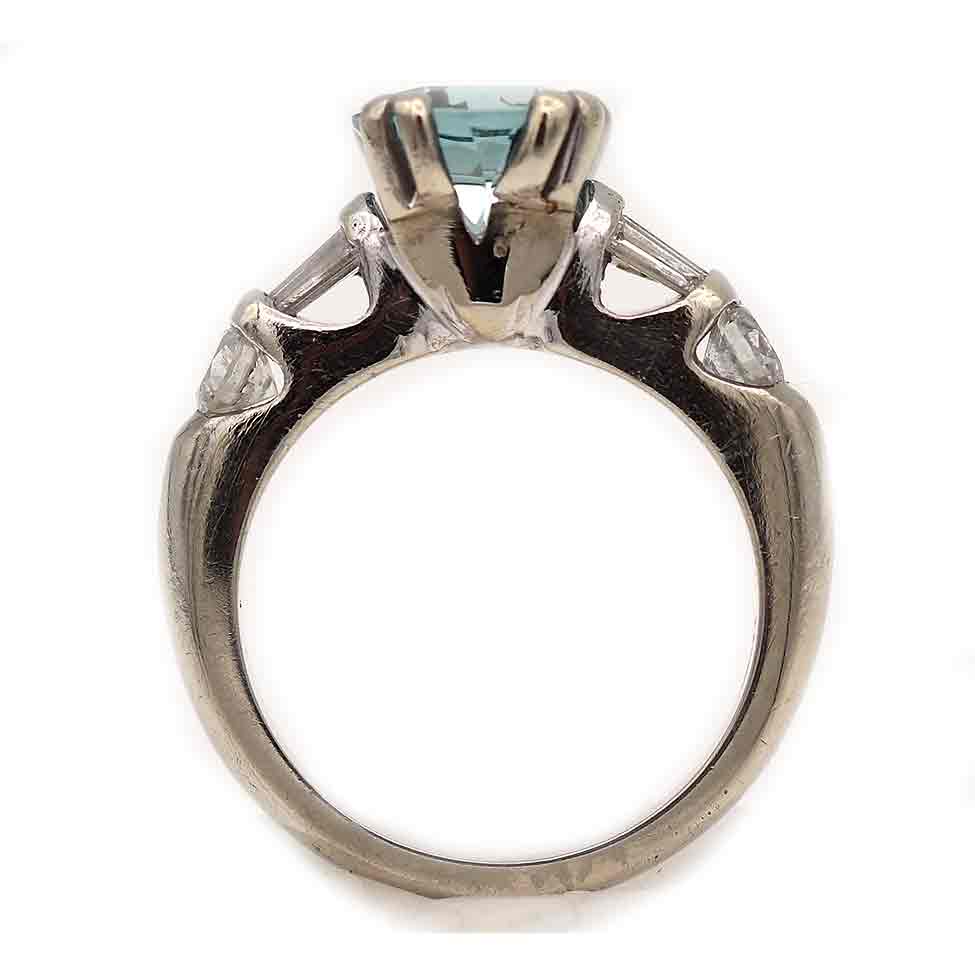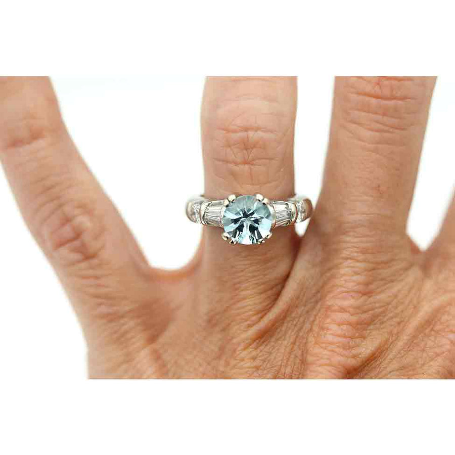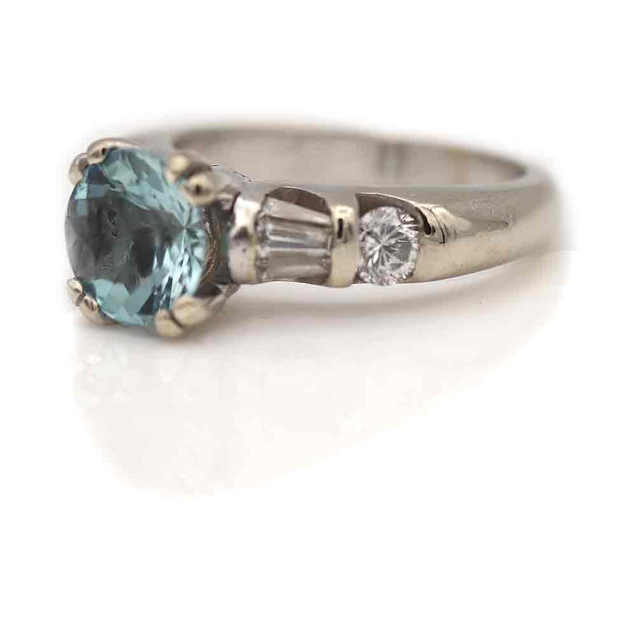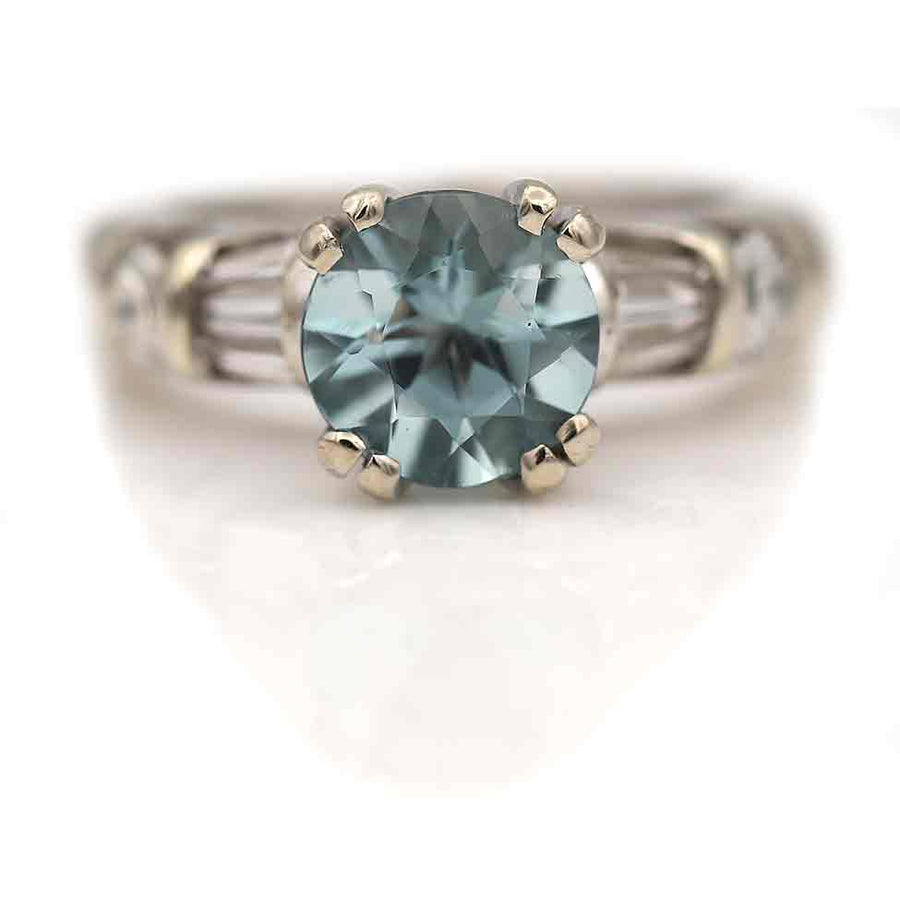 Vintage 1.55 Carat Aquamarine Engagement Ring with Side Baguette and Round Diamonds