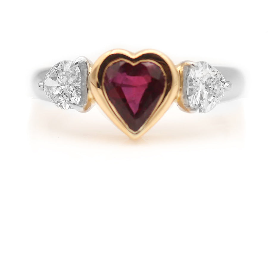 Vintage 2.13 CTW Siamese Ruby Heart Shape Diamond Gemstone Engagement Ring