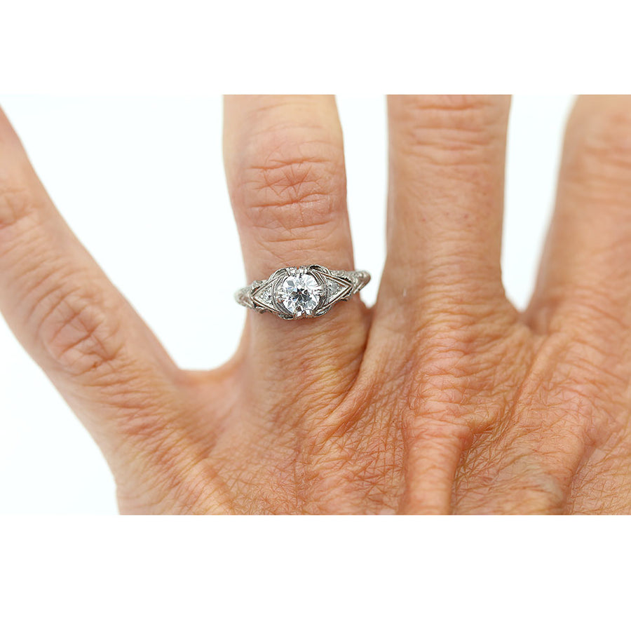 Vintage .60 CTW Old European Cut Diamond Art Deco Engagement Ring GIA I/VS1