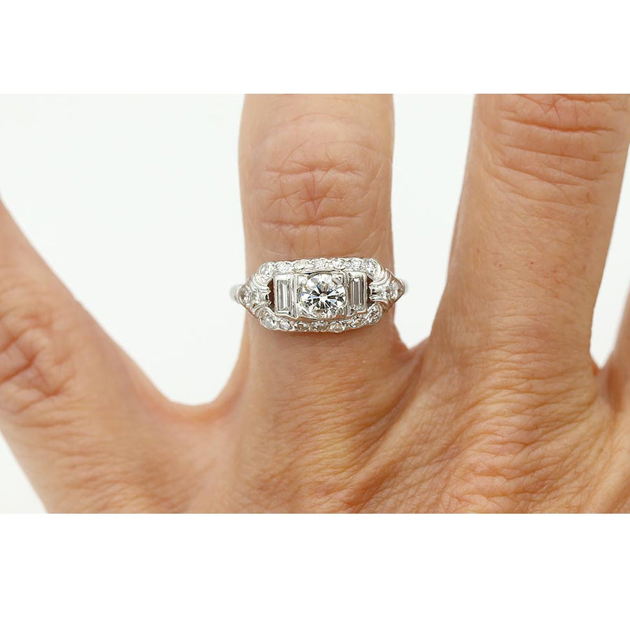 Vintage .82 CTW European Cut Baguette Diamond Art Deco Engagement Ring