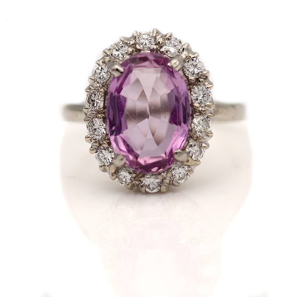 Vintage Pink Tourmaline & Diamond Engagement Ring Circa 1980s