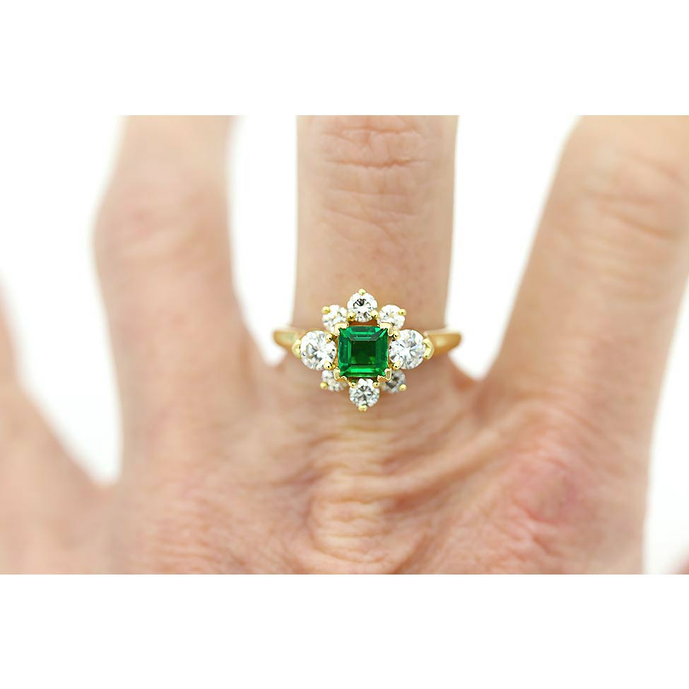 Vintage Square Emerald & Diamond 18 Karat Yellow Gold Engagement Ring .90 Ct GIA No Oil Kurt Wayne