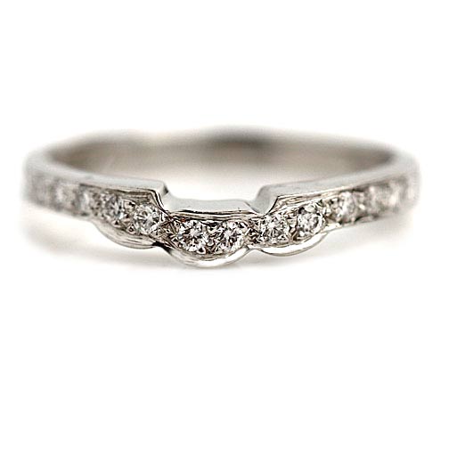Vintage Style 18 Kt White Gold Contoured Stacking Band