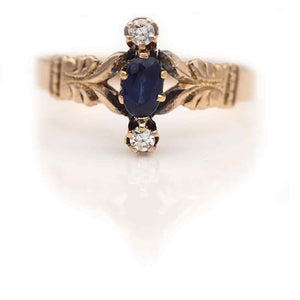 Victorian Ceylon Oval Cut .35 CTW Sapphire & Diamond Gemstone Engagement Ring