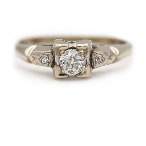 Mid-Century .34 CTW Geometric Square Old Mine Cut Antique Diamond Ring