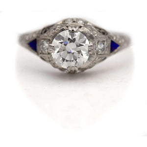 Art Deco 1.07 CTW Old European Cut Diamond Engagement Ring Sapphires Platinum GIA H/VS2