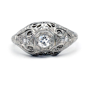 Vintage .25 CTW Old European Cut Diamond Art Deco Engagement Ring with Open Metal Work