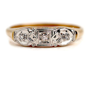 Low Profile Antique .15 CTW Two Tone Diamond Vintage Wedding Ring Circa 1950's