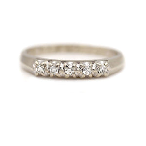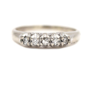 Antique 5 Stone 14 Kt White Gold Diamond Stacking Wedding Ring