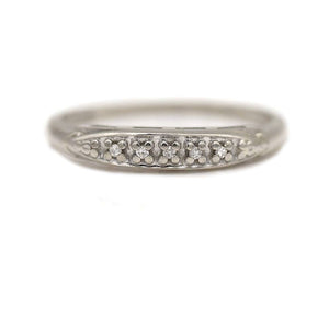 Estate 5 Stone Prong Set .15 CTW 14 Kt White Gold and Diamond Stacking Vintage Wedding Band