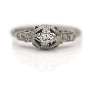 Art Deco .20 CTW Old European Cut Diamond Filigree Antique Engagement Ring