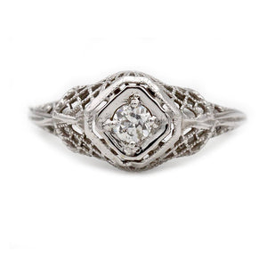 Art Deco .15 CTW Filigree Mine Cut Diamond Vintage Engagement Ring