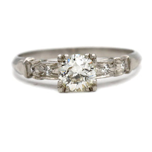 Mid-Century 2.10 CTW Round Diamond Vintage Engagement Ring w/ Baguettes GIA K/I1