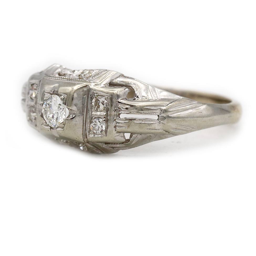 Antique .31 CTW Art Deco Diamond Engagement Ring with Side Stones