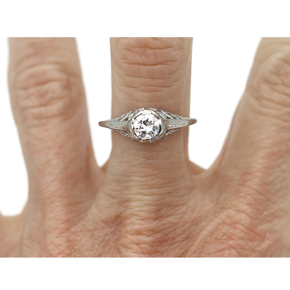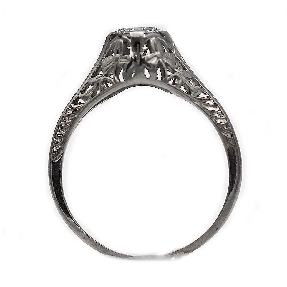 Art Deco .50 CTW Old European Cut Diamond Floral Vintage Engagement Ring GIA F/SI2