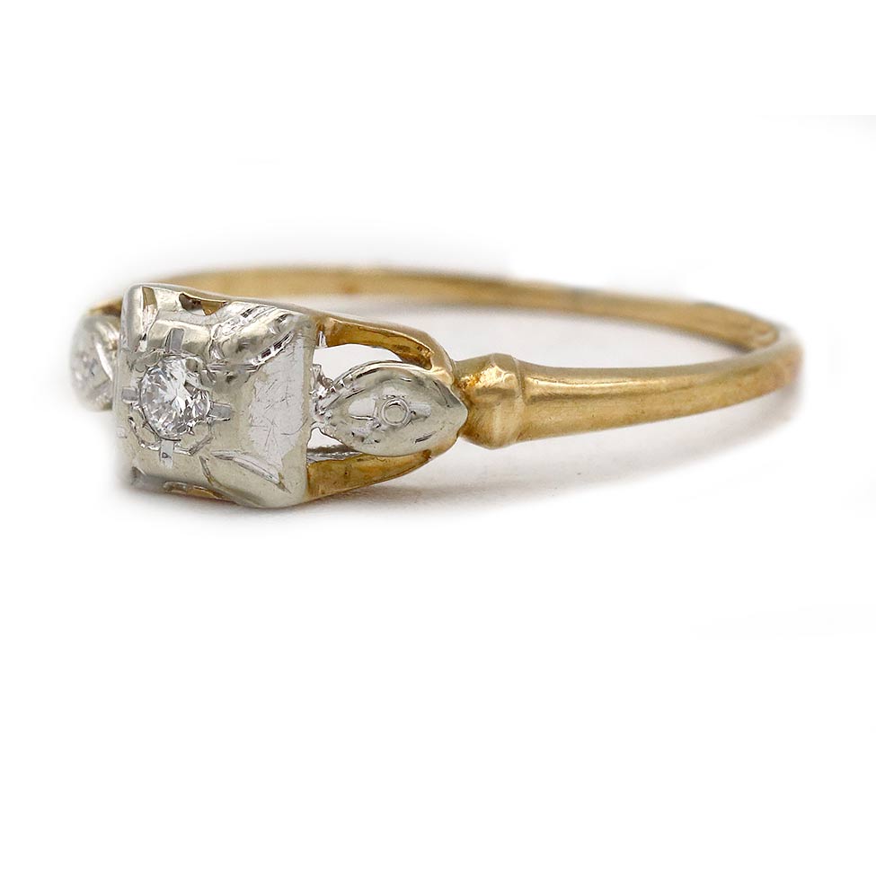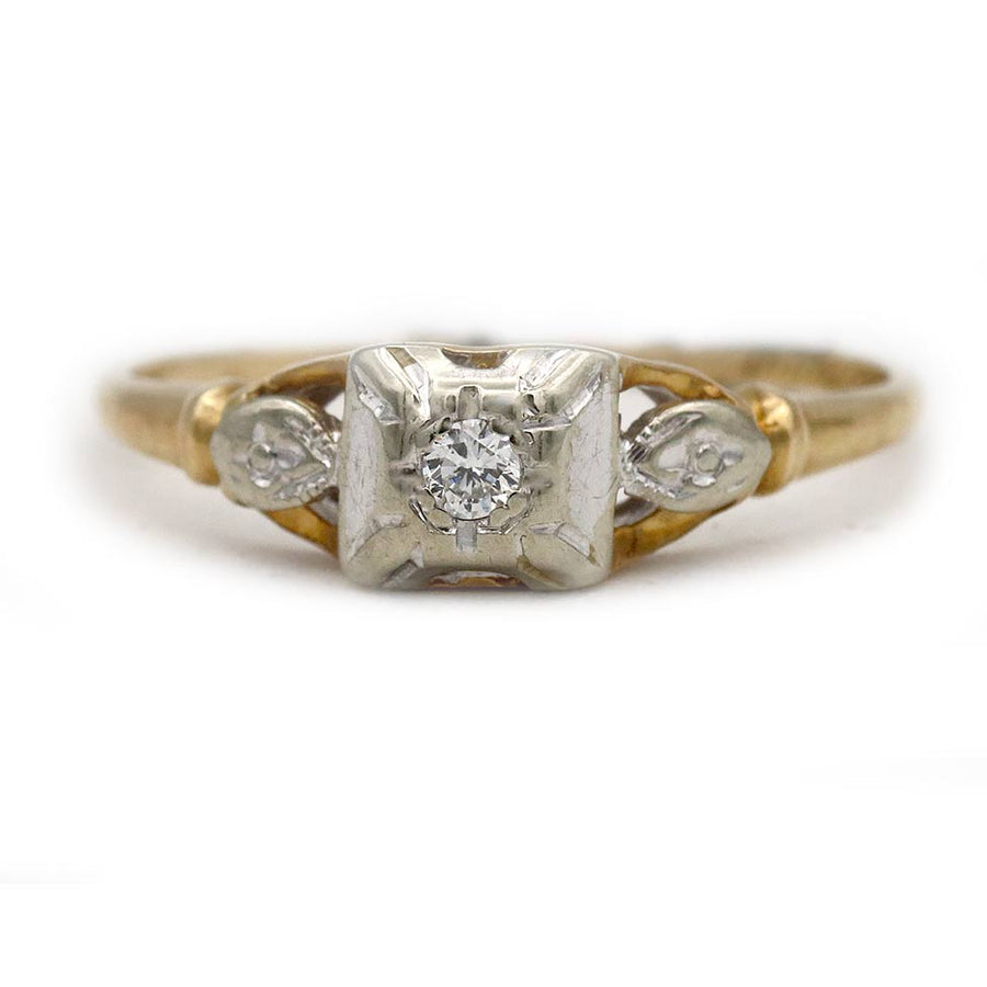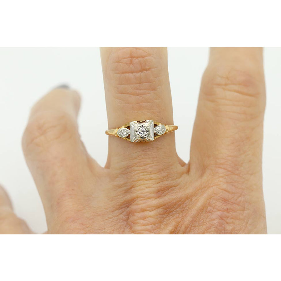Mid-Century .10 CTW Transitional Cut Antique Engagement Ring with Light Patina