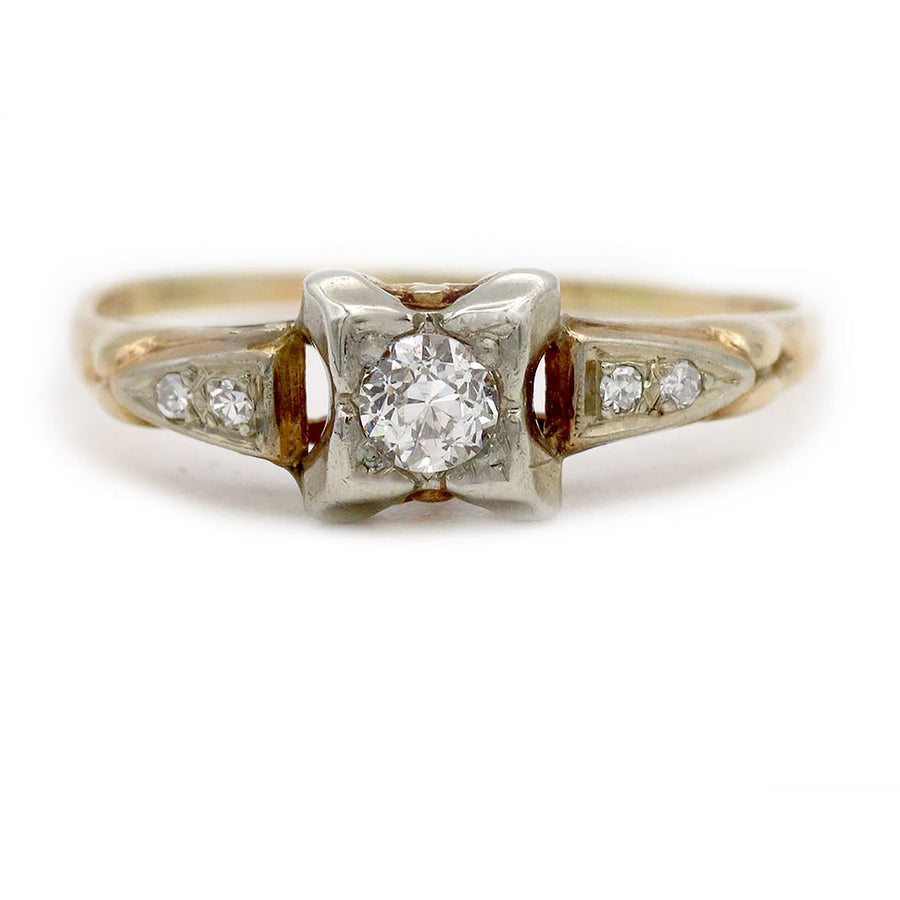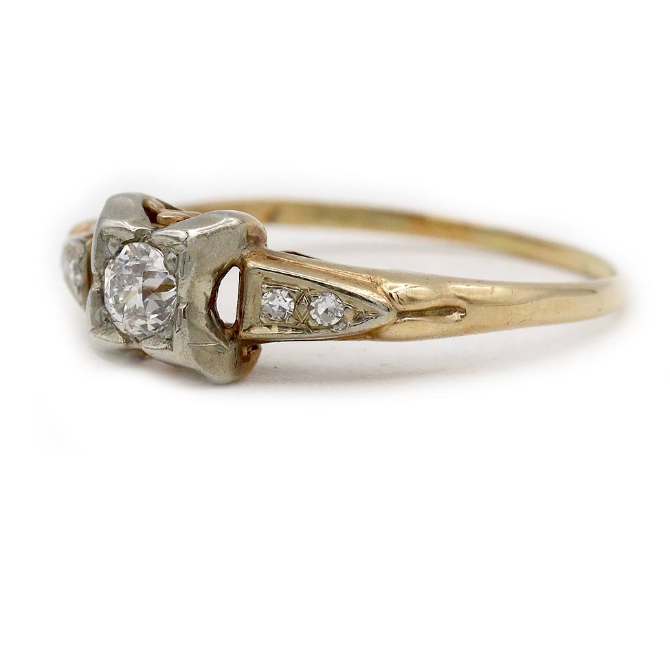 Mid-Century .24 CTW 1940s Vintage Diamond Two Tone Gold Engagement Ring