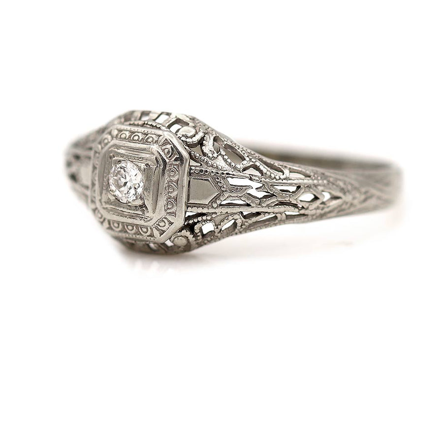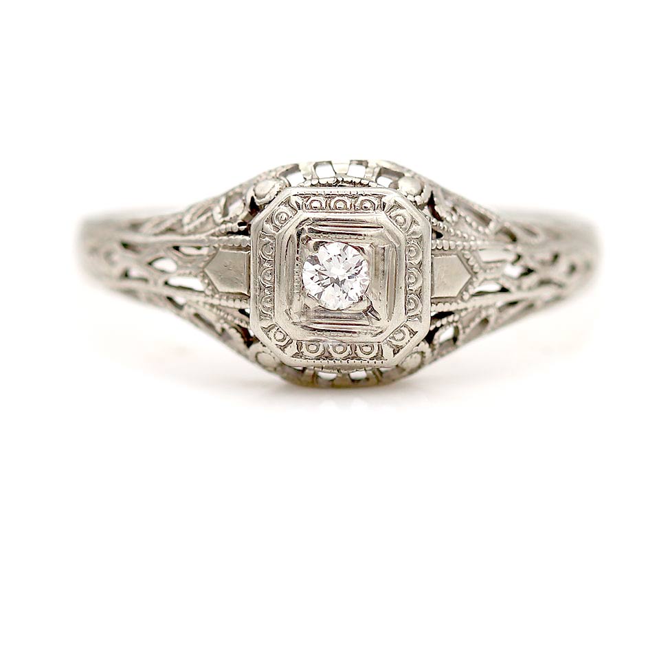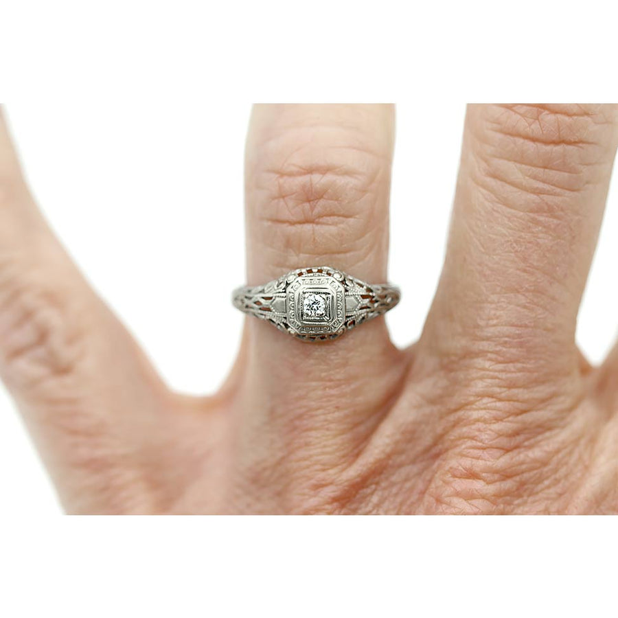 Rare .08 CTW Art Deco Engagement Ring with Filigree Engravings