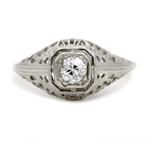Antique .35 CTW Old Euro Art Deco Diamond Engagement Ring with Open Work Gallery