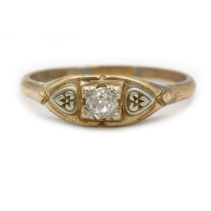 Antique .10 CTW 14 Karat Two Tone Solitaire Mid-Century Diamond Ring with Filigree
